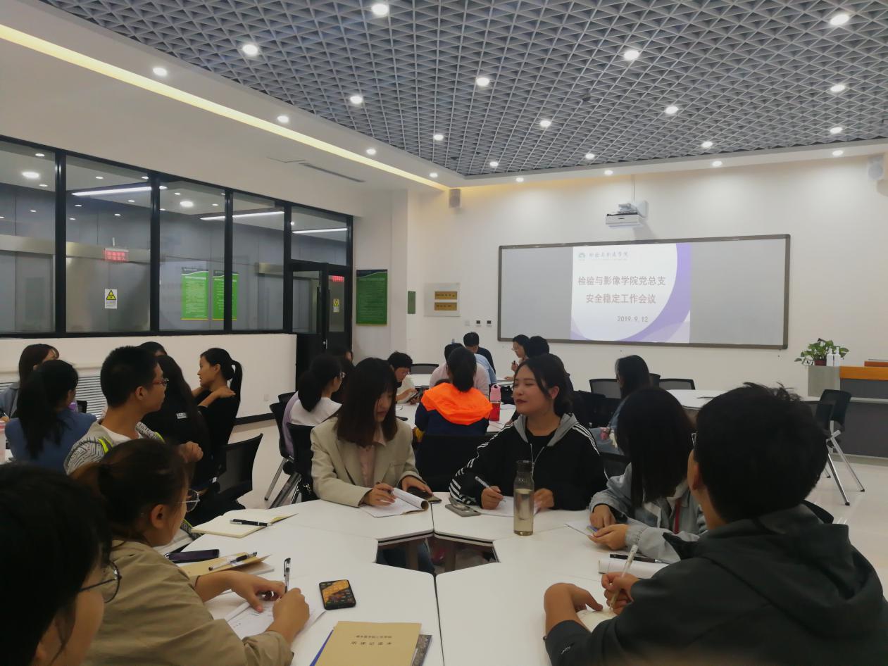 9月12日下午,检验与影像学院召开2019-2020学年第一学期安全稳定工作专题会议,检验与影像学院全体教职工参加会议,会议由党总支书记赵云娟主持。