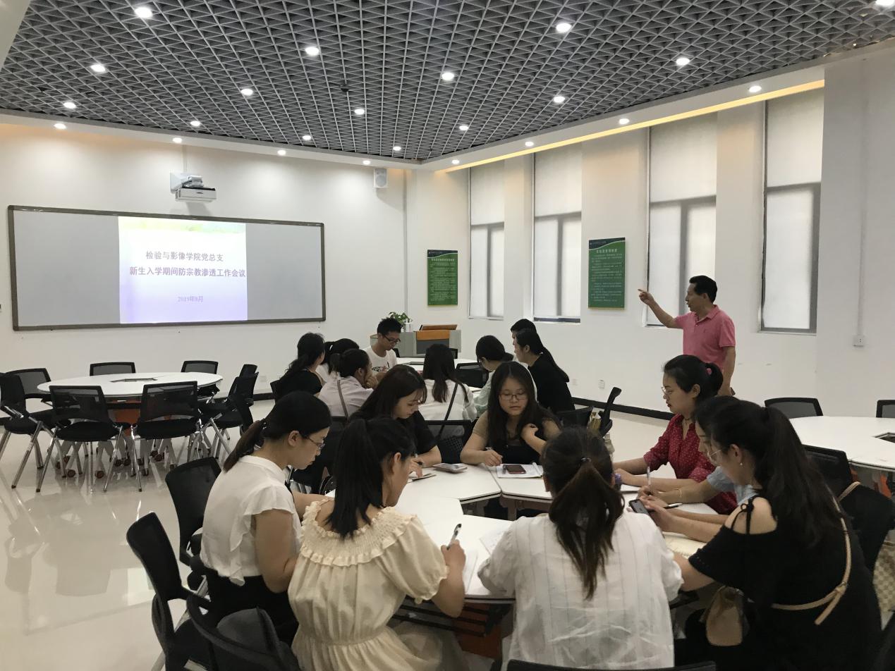 2019年8月23日,检验与影像学院党总支召开“防宗教渗透工作”专题会议,传达《新乡医学院三全学院新生入学期间防宗教渗透工作》精神,部署相关工作。会议由党总支书记赵云娟主持。