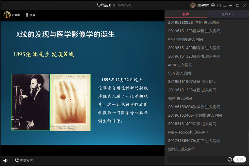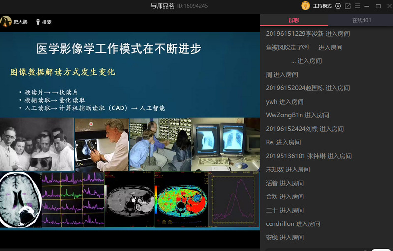 5月29日下午3时,河南省人民医院医学部主任兼放射科主任史大鹏教授“云做客”精诚书院第29期与师品茗,本次与师品茗以“医学影像学的发展趋势与医学影像技术人才培养”为主题,我校400余名医学影像专业学生参加。