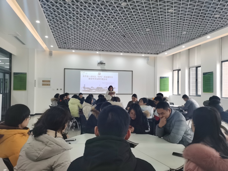 12月9日上午,为进一步加强我校作风纪律建设,切实严肃工作纪律,改进工作作风,提高工作效率,检验与影像学院党总支召开关于进一步纠正“四风”和加强作风建设专项治理专题会议,检验与影像学院党总支全体成员参加会议,会议由党总支书记赵云娟主持。