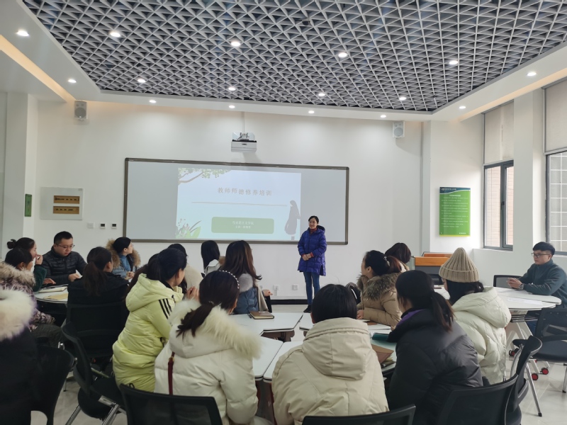 首先,范艳香副教授就近年来因触犯师德建设要求而受到组织和法律处理的教师违规、违法的典型案例,警醒全体教师明红线,守底线,规范从教,树立高尚的师德追求。提醒全体教师以德修身、恪守师德;敬畏规则、规范从教;自省自律、严防侥幸。范艳香强调新时代成功幸福的教师应始终坚守“三心”:坚守敬畏之心,敬畏职业规范;常怀感恩之心,感恩生活,感恩学校,感恩他人;不忘育人之心,不断修炼育人之功。