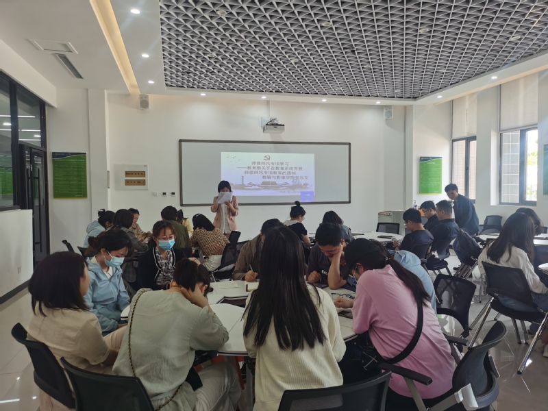 随后,赵云娟带领大家共同学习《教育部关于在教育系统开展师德专题教育的通知》,全体参会教师认真聆听,做好笔记,学习热情高涨。