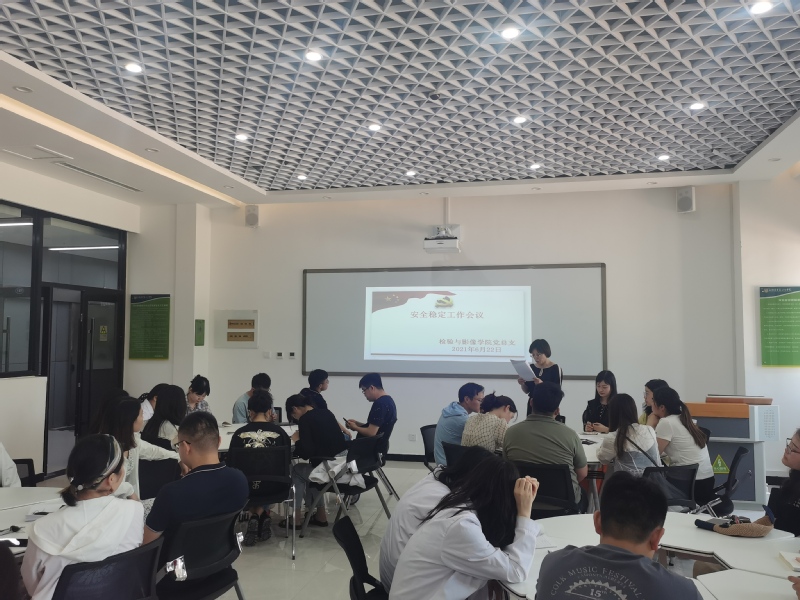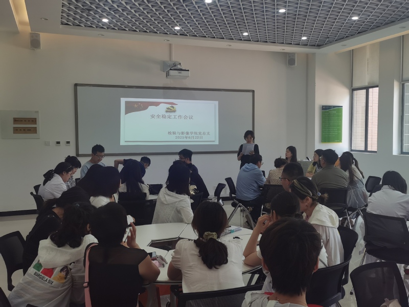 6月22日上午,检验与影像学院党总支在在医工楼一楼核磁实训室召开安全稳定工作会议。会议由党总支书记赵云娟主持。