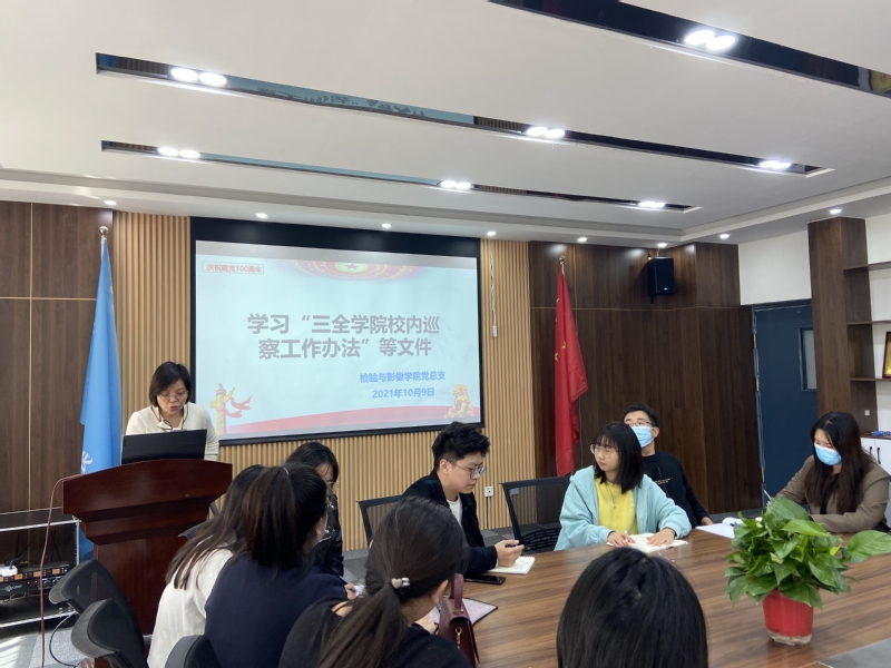 为进一步增强党员的廉洁自律意识,推动学院全面从严治党向纵深发展,检验与影像学院党总支于2021年10月9日在医学检验学院一楼会议室开展《新乡医学院三全学院校内巡察工作办法(试行)》等文件集中学习活动。本次集中学习活动由检验与影像学院党总支书记赵云娟主持,检验与影像学院全体教职工参加本次学习活动。