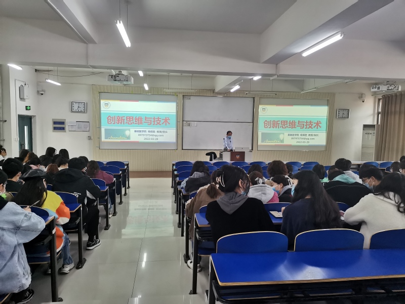 此次授课题目为《创新思维概述与创新的基本素质》,杨保胜教授以提问“什么是创新思维与技术?“作为导入,引导学生们自主思考,点燃学生们的互动热情,课堂气氛活跃。在课程开展过程中,杨保胜教授以自身多年取得的教学科研成绩为例,将课堂理论知识化繁为简,便于学生对知识的吸收与转化。再结合影像技术专业领域的创新发展历史作为思政点,使医学影像技术专业学生对于专业有一种归属感和责任感。