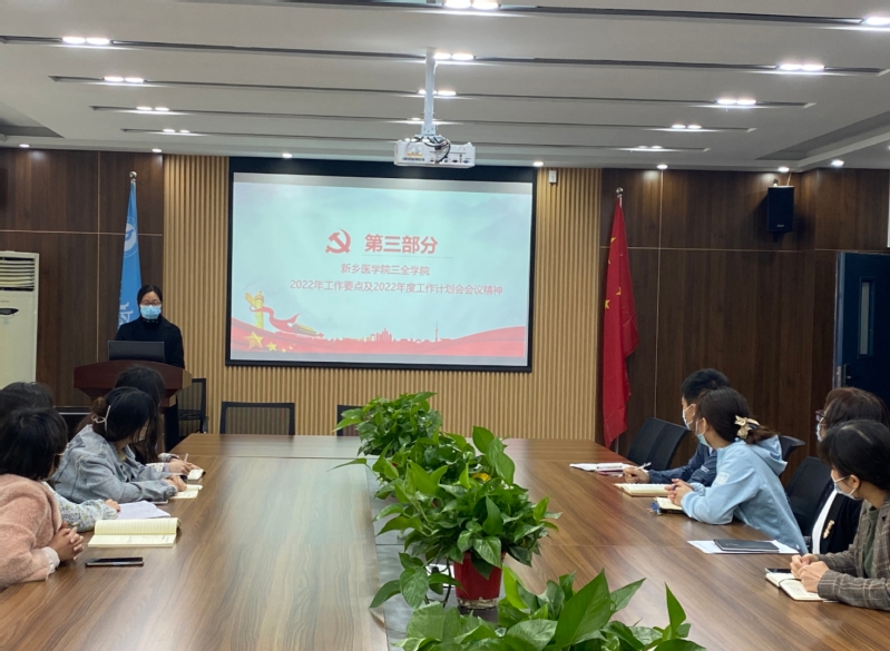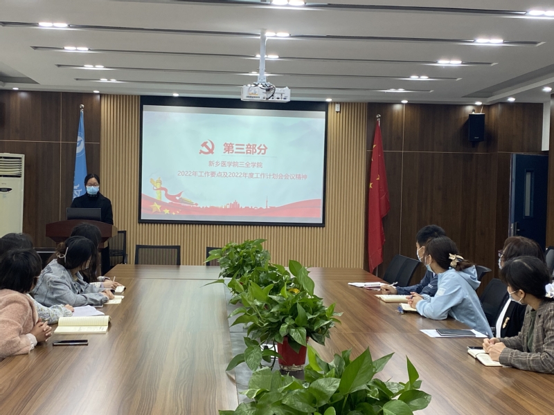 会议就《加快建设科技强国,实现高水平科技自立自强》、《新乡医学院三全学院2022年工作要点及2022年度工作计划会议精神》等多个文件展开学习。