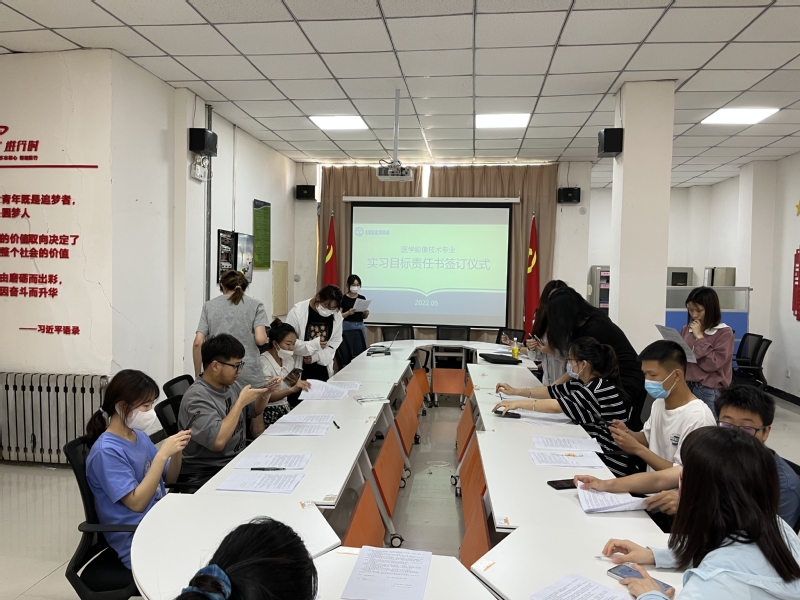 为进一步做好做实做细2021级实习生实习工作,5月26日医学影像学院联合精诚书院、智行书院召开医学影像技术专业实习目标责任书签订仪式。医学影像技术实习班全体学生参加此次会议。