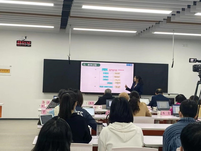 本次大赛流程分为说课、讲课和答辩三部分。比赛过程中,苗莹莹以饱满的精神状态、精心设计的授课内容和别出心裁的授课形式,运用多媒体教学,把所挖掘的思想政治教育元素融入课堂教学,对复杂的现象进行分解和综合,使教学突出重点,突破难点,循序渐进,很好的体现由浅入深,从简到繁,由易到难的过程。