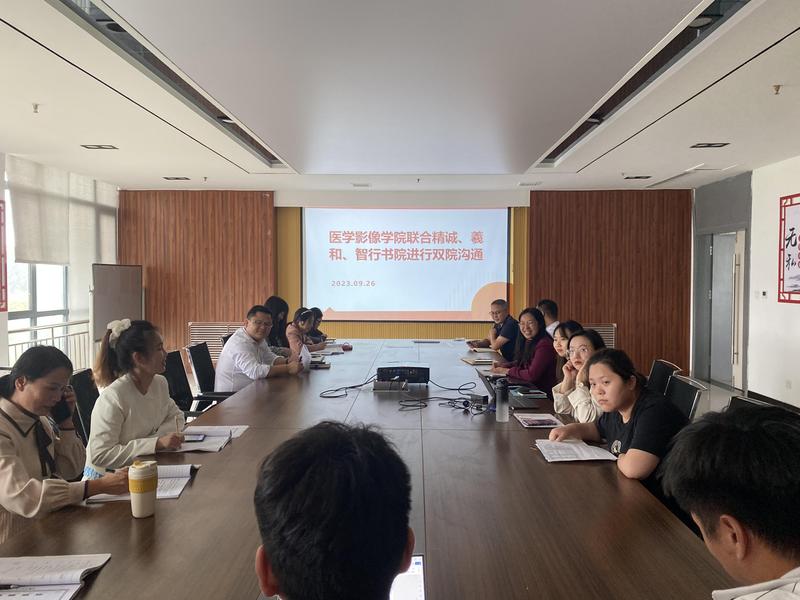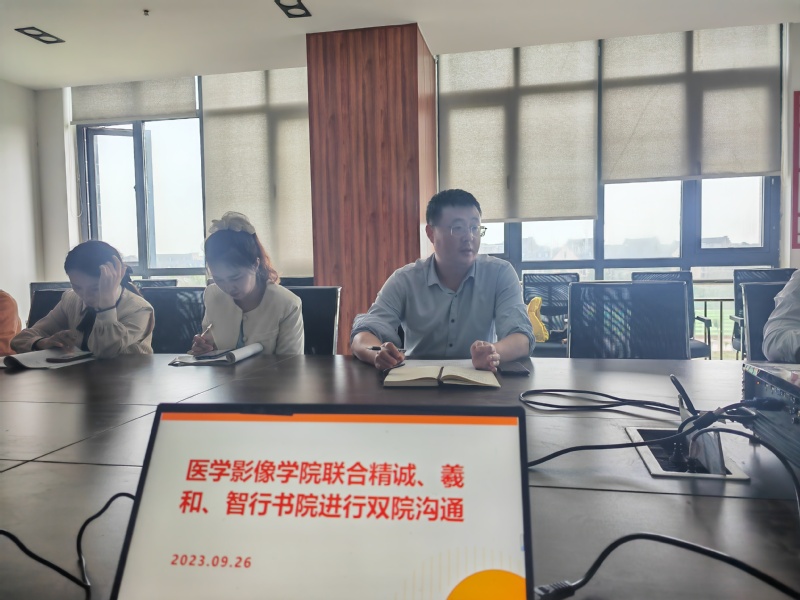 9月26日下午两点,医学影像学院邀请精诚书院、羲和书院、精诚书院,在医工楼四楼共同进行双院沟通,参与本次会议的有医学影像学院教学院长苗莹莹、精诚书院书记张新、羲和书院书记刘小磊、智行书院书记刘凯以及影像学院学业导师、影像专业书院辅导员。