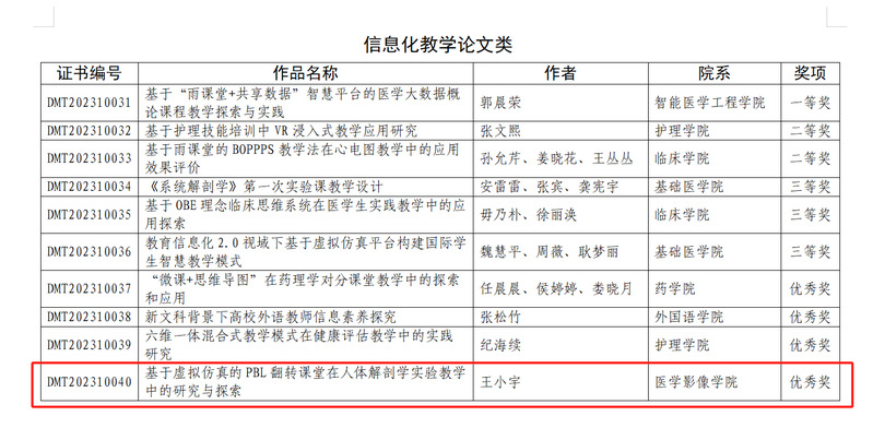 我院苗莹莹老师荣获信息化教学课程案例类一等奖、王小宇老师荣获信息化教学论文优秀奖。