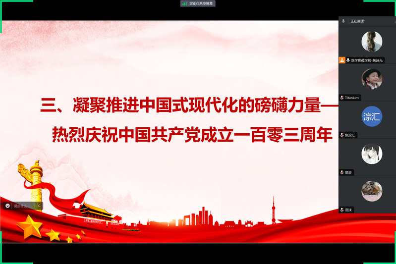 2024年7月24日,医学影像学院党支部于腾讯会议线上开展“践承若 守党纪,学党史 庆‘七一’”主题党日活动,会议由党支部副书记黄诗允主持,医学影像学院党员教师、入党积极分子参加。