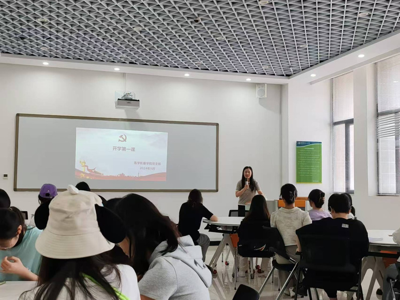2024年9月12日下午,医学影像学院党支部副书记黄诗允于医工楼一楼MR实训室开展“开学第一课”活动,活动参与人员为23级医学影像技术专业本科67-68班学生。