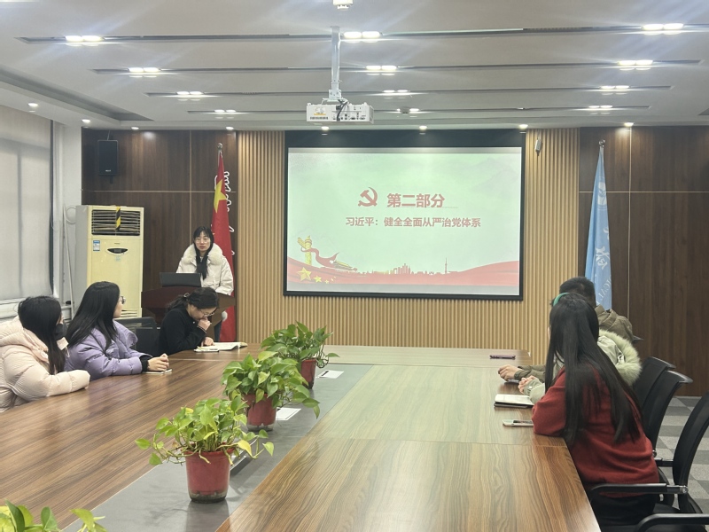 会上党总支副书记苗莹莹领学:《习近平在二〇二五年春节团拜会上的讲话》、《习近平:健全全面从严治党体系》、《习近平总书记关于加强和改进民族工作的重要思想》、《2025年河南省政府工作报告全文》共四部分内容。