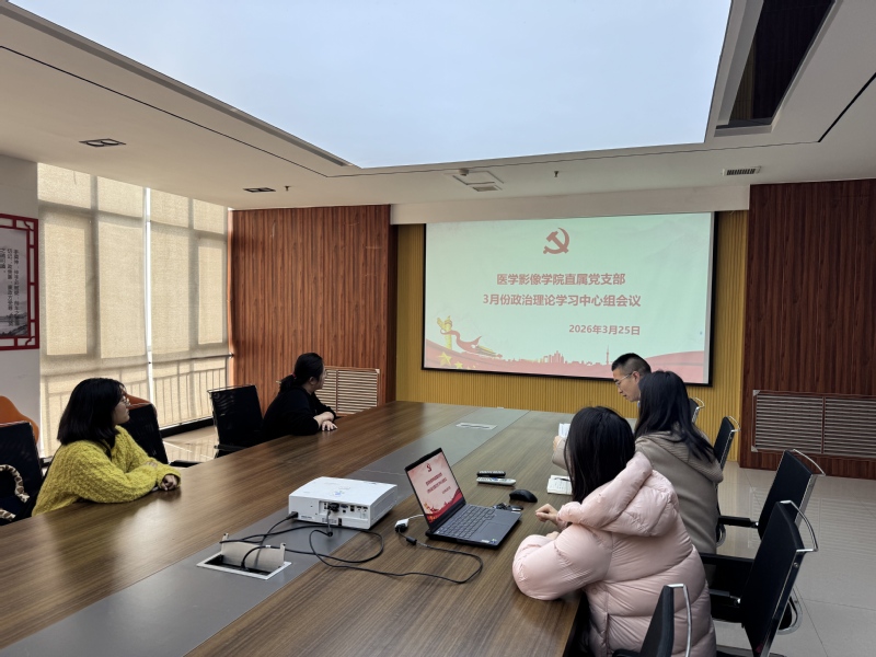 3月25日,医学影像学院直属党支部中心组3月份政治理论学习在医工楼四楼会议室召开。会议由直属党支部书记王耀峰主持,中心组全体成员参加。