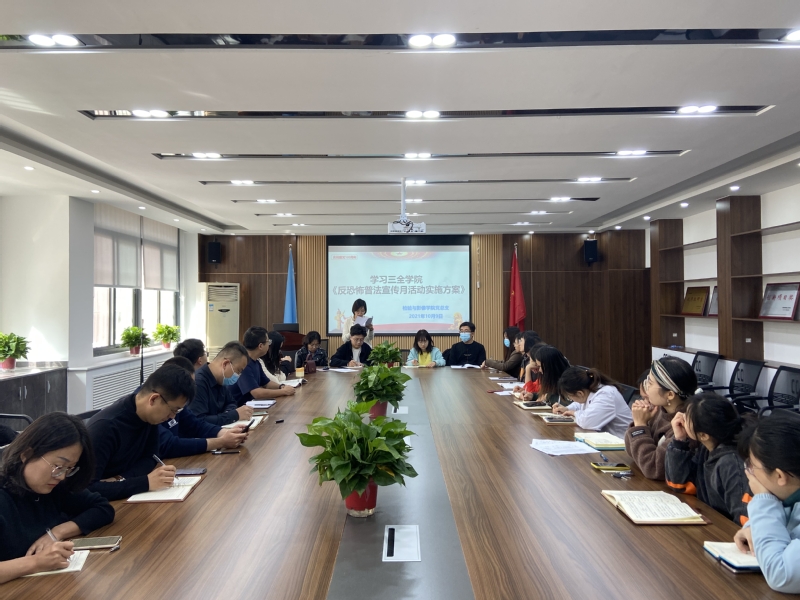 2021年10月9日,检验与影像学院党总支于医学检验学院一楼会议室开展了《新乡医学院三全学院反恐怖宣传月活...