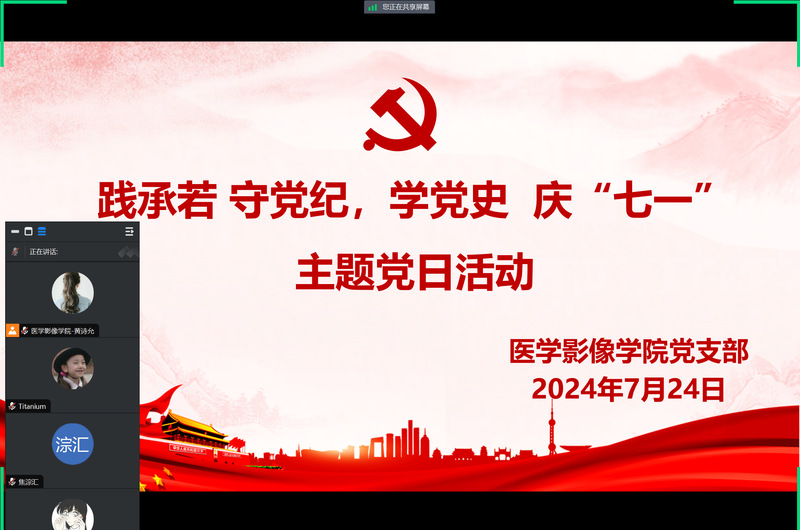 (文:黄诗允 图:黄诗允)2024年7月24日,医学影像学院党支部于腾讯会议线上开展“践承若 守党纪,学党史 ...