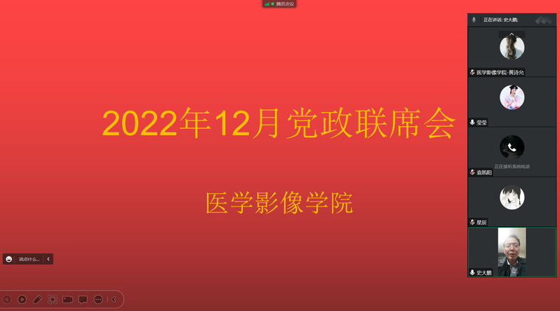 (文\袁凯阳 图\黄诗允)11月8日晚上,医学影像学院在腾讯会议召开党政联席会议,线上进行2022年度绩效考核...