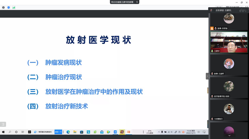 (文/李梦园 图/李梦园)12月15日,医学影像学院在腾讯会议线上平台举办“2022级放射治疗方向班招生宣讲会...