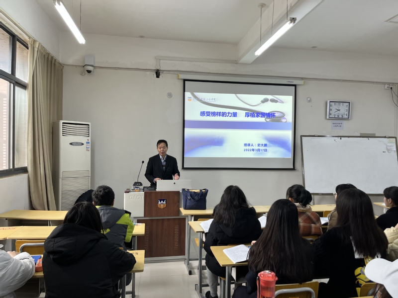 2022年3月18日上午,医学影像学院院长史大鹏教授,以“感受榜样的力量,厚植家国情怀”为题,为2019级本科...
